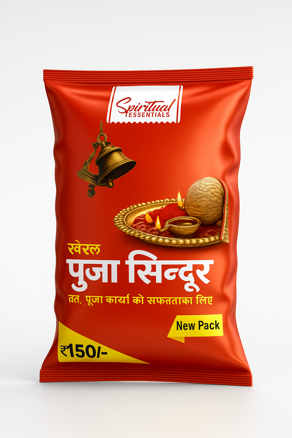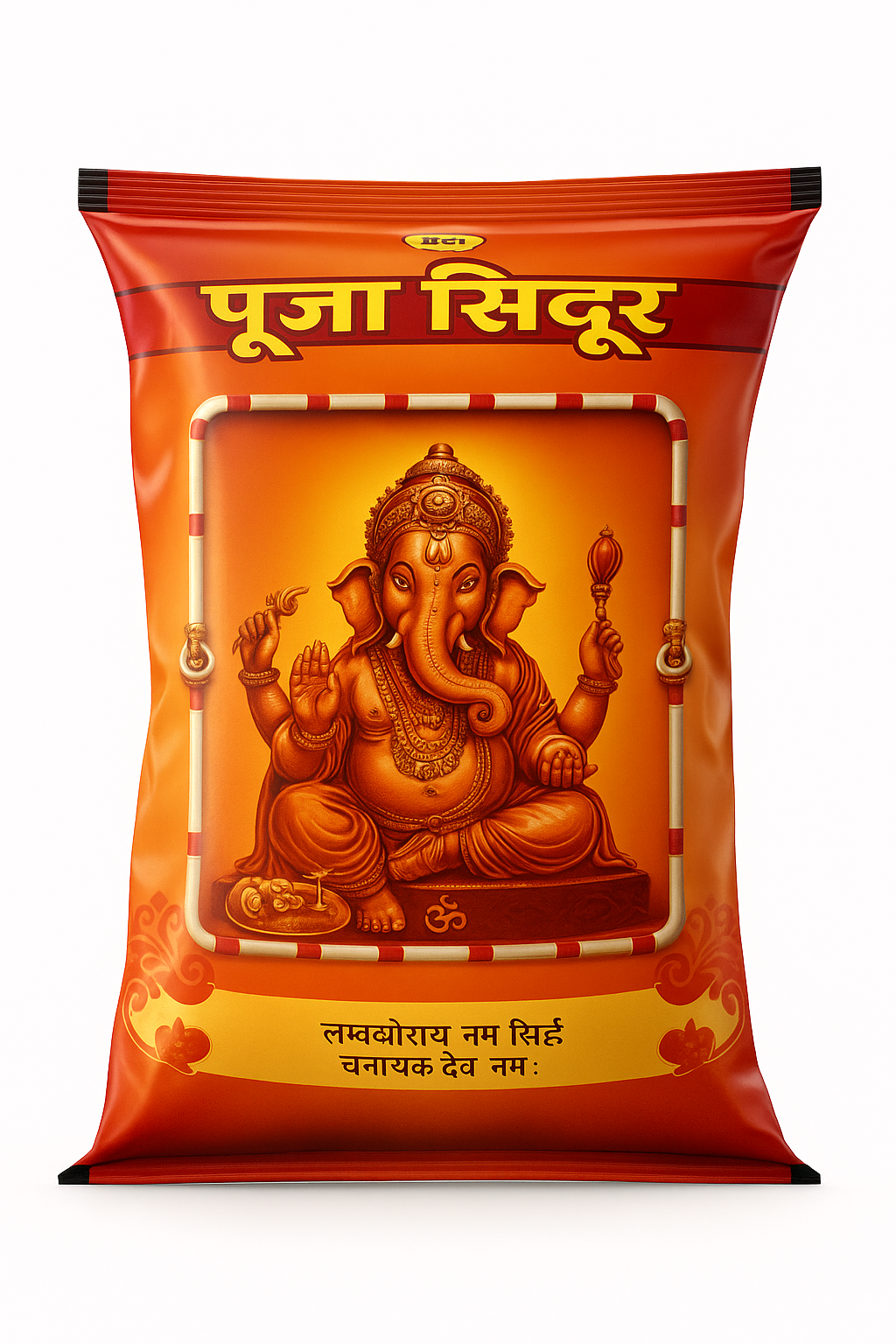 Pure and bright sindoor, symbol of Goddess worship and marital auspiciousness.
